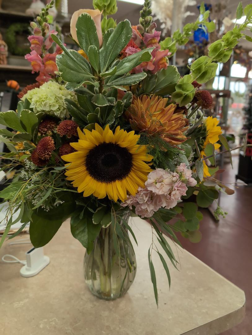 - Fall mix of fresh flowers in a vase